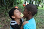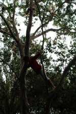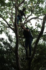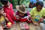 Wir spielten verschiedene Spiele, bei denen die Kinder und Jugendlichen auf Bäume kletterten, um eingepackte Mangos und kleine Geschenke herunterzuholen oder das traditionelle Schokoladenessen, bei dem die Kinder und Jugendlichen darum spielen, wer Schokolade essen kann. Auch das Apfelessen spielten alle Teilnehmer zusammen, wobei der Altersunterschied keinerlei Rolle spielte.